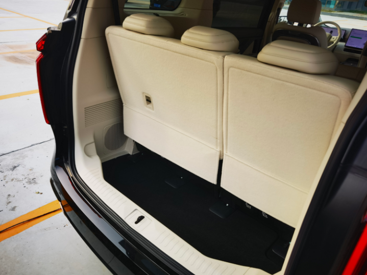 不可避免的是,限于车身长度,常规状态下高山7行李舱确实变小了,跟高山8相比缩水了202升。只不过,这对日常家庭用车场景来说不算什么大问题,因为,即便是7人舒适乘坐,其行李舱也能容纳7个20寸行李箱或组合(如1个28寸+1个24寸+2个20寸),何况,它采用风琴式设计,最大载物容积可拓展至1725升,且第三排座椅在收起坐垫时向前调节行程可达735mm,灵活性极高。